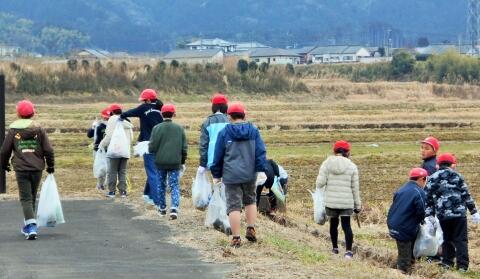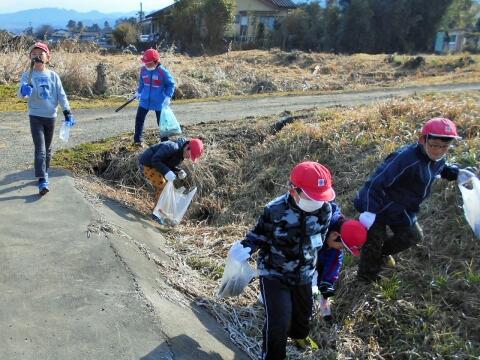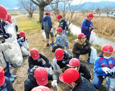 1月31日(水)、総合学習の時間に、美しい川や自然を守るために自分たちにできること…として、4年生が安久のクリーン活動をしました。