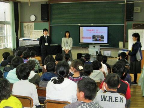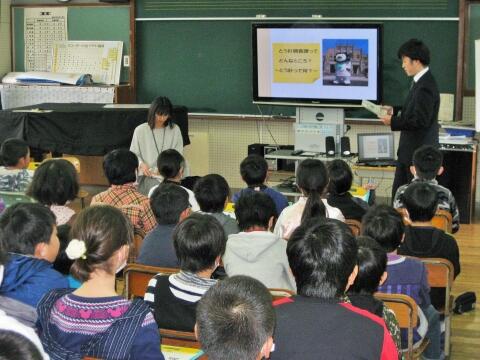 県職員の方からの説明と、県が作成した小学生向けのビデオを見て学びました。