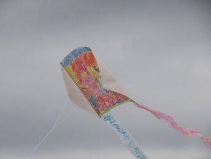 子どもたちが、一生懸命走ったおかげで、運動場にたくさんの凧が舞いました。