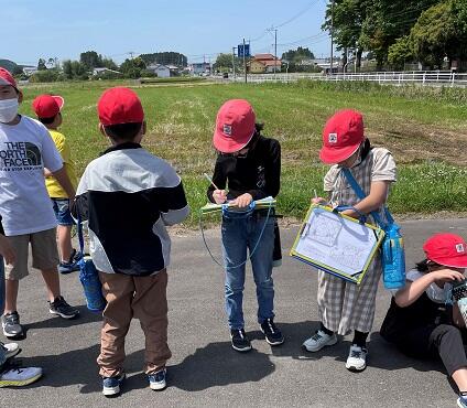 大型連休の間の今日、3年生が社会科で学校の周辺を探検しました。