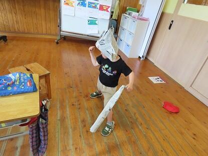 それにちなんでということでしょうか、特別支援学級を覗くと、新聞紙で作った「かぶと」がありました。