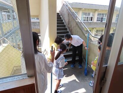 本校は、「くるみ班」といって縦割りの班を編成し、学年の枠を超えて、協力しながら清掃を行います。