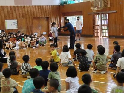 警察署の方2名に来ていただき、不審者対応の避難訓練を行いました。