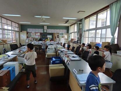 職員室に来た児童は、まず、2年生が職員室がどんな場所かを1年生に説明をしました。