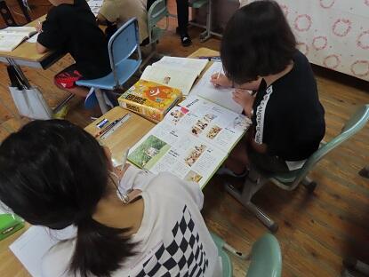 資料を見て、大切なことをメモしたり、友達と相談して書くところを見つけたりと、進んで学習している姿が印象的でした。