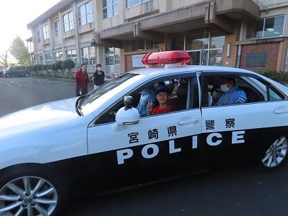 初めて乗るパトカー、ドキドキ、ワクワクだったと思います。