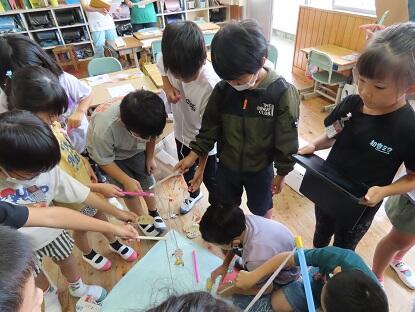 子供達は、ゲームに楽しく取り組んでいました。その中でも、良かったところや、直したらいいところをメモし、発表をして、他の班の友達に教えていました。