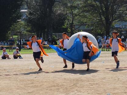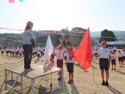 昨日の雨がすっきり晴れ上がり、秋空の下、延期になった運動会を本日実施しました。