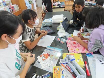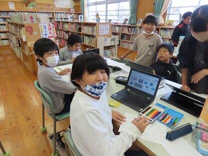 イラストクラブではタブレットを活用していました。ICTのおかげで、上手な作品がたくさんできていました。
