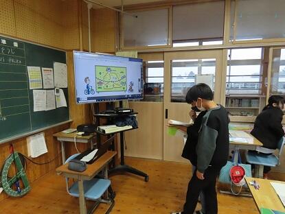 テレビのところに行って、近くで図を見ながら、ヒントを探っている児童がいました。