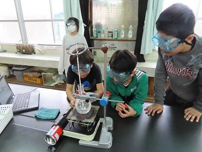 4年生が「水のすがた」の単元で、理科の実験をしました。