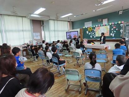 なお今日は、居住地交流活動として、本地区在住のさくら聴覚支援学校の3年生が本校に来て、一緒に活動を楽しみました。