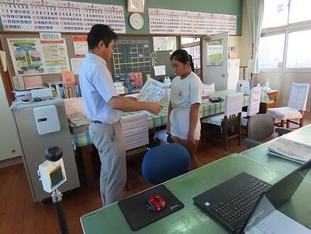 写真はリーダーです。担当の先生の話を真剣に聞いていました。