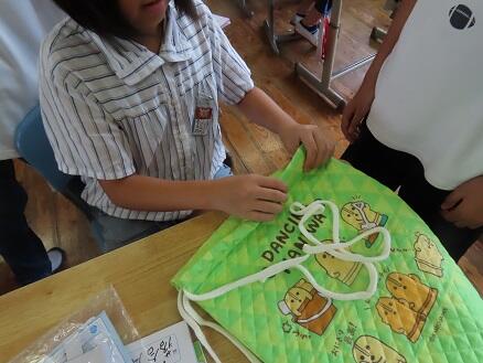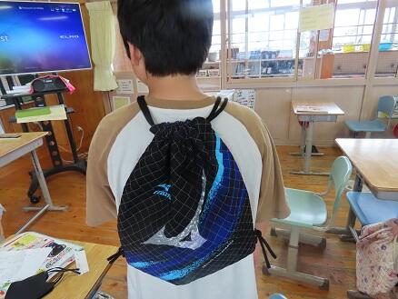 6年生がこれまで約1か月間かけて作成してきたナップサックが、ほぼ完成しました。