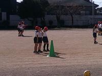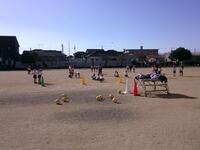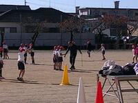 2年生の体育の授業では、なわとびをやっていました。3人がタイミングを合わせて1つの縄を使って飛ぶ練習をしています。タイミングを取るのは難しそうですが、寒い中、一生懸命頑張っていました。