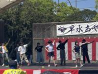多くの観客の皆様の前で、本校の伝統である川東音頭と、フラッグ(旗)を使ったダンスを披露しました。