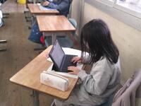 ある程度問題が終わった人は、タブレットに、今日の学習のふり返りを入力していました。