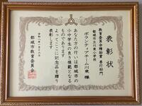先日の都城市教育委員会精励賞授賞式で、本校の「ボランティアチーム川東」が善行部門で表彰されました。