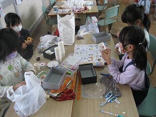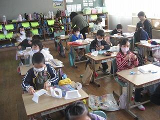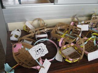 4年生は図工の時間に組紐を使った作品作りに挑戦しました。一人一人がアイデアを活かして、組紐を上手に編んで、船や皿・かご・飾りなどの楽しい作品を作り上げました。
