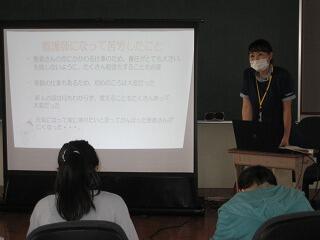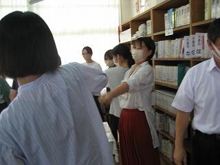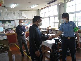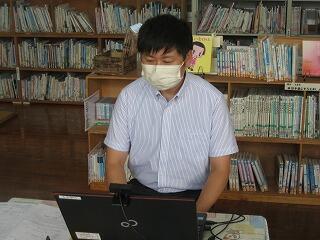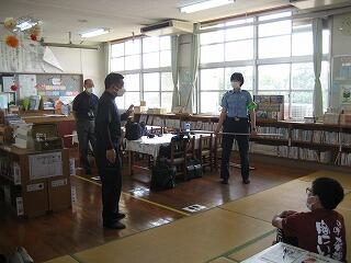 夏休み期間中に職員の研修として、都城警察署の職員の方に講師をお願いし、不審者対応訓練を行いました。普段からの心構えや万一の時の対応など全職員で真剣に研修を行いました。