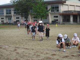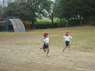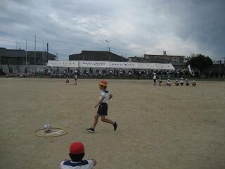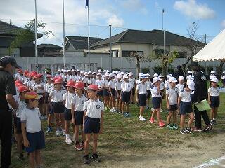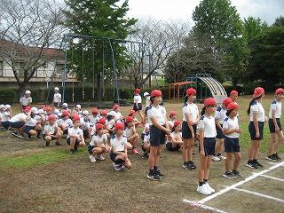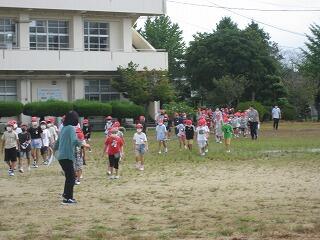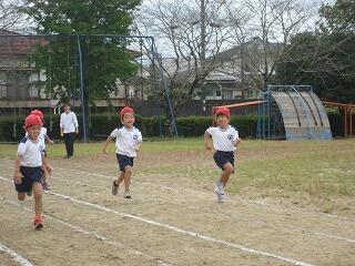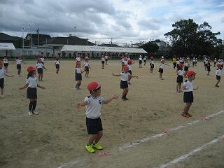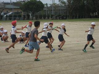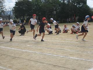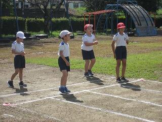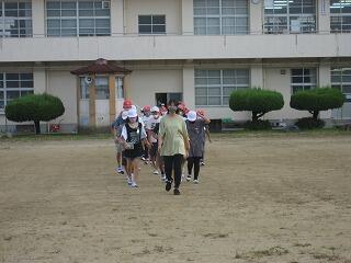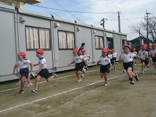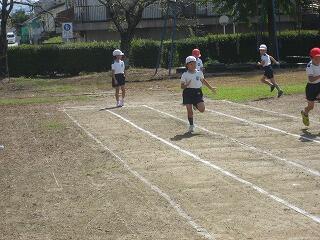 10月の運動会を前に各学年、少しずつ練習を始めています。1年生も徒走の練習をしていました。みんながんばって最後までしっかり走っていました。