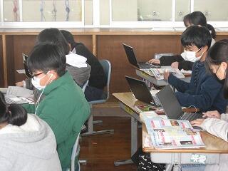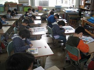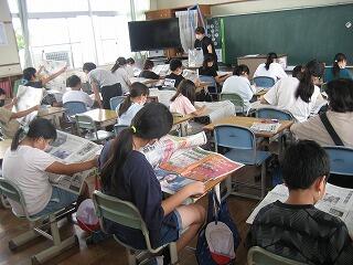 5年生の国語の時間です。それぞれ新聞を読んで、見出しやリード文、本文などの文章の構成の工夫を学習しています。おもしろい記事、ありましたか?