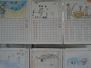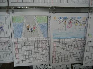 1年生の廊下に子どもたちが描いた絵日記が掲示されていました。どの絵日記も夏休みの楽しい思い出がすごく伝わってくるすてきな絵日記でした。観ているこちらもとても楽しい気持ちになりました。