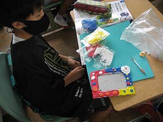 3年生は図工の時間に写真立てを作成しました。どの作品もきれいに工夫された飾りがついていました。みんなどんな写真をいれるのかな?