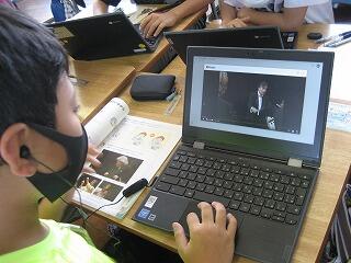 6年生の音楽の時間です。大きな声で合唱したり合奏することが難しい中、今日は世界の音楽について調べていました。ICTを活用することによって、世界中のいろんな音楽の動画に触れることができますね。