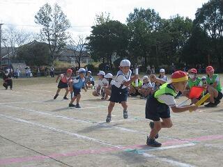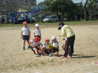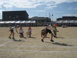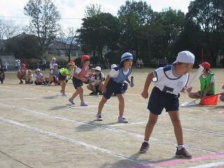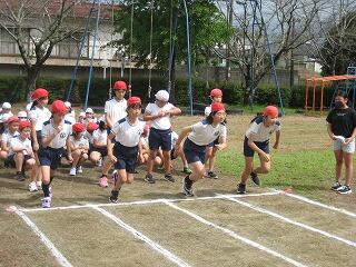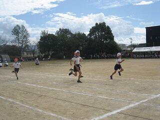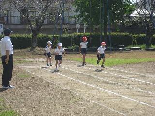 2年生も運動会に向けて練習を始めました。今日はかけっこの練習です。みんな、ゴール目指してひっしで走っていました。