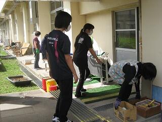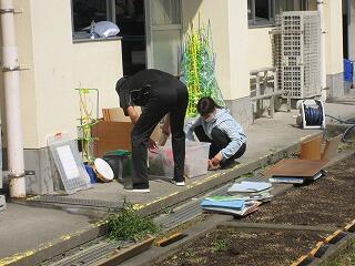 台風被害の修復工事も順調に進み、1年生教室や管理棟の職員室、事務室などの工事が終了しました。今日は先生達総出で元の部屋への引っ越し作業を行いました。床や棚がとてもきれいになっており、気持ちよく学校生活が送れそうです。