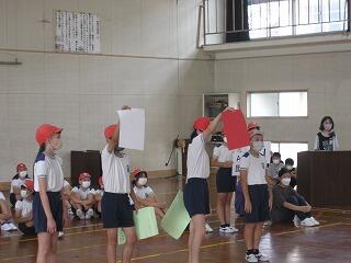9月1日は「防災の日」。川東小学校でも地震発生時における避難訓練を実施しました。各学級で地震が発生したときの避難の仕方を学んだ後、実際に地震発生時と同様に避難の訓練を行いました。全児童、おしゃべりしたりふざけたりする児童はなく、真剣に取り組んでいました。いつ発生するかわからないのが地震です。ご家庭でももしもの時に備えてぜひ避難の仕方について話題にしてみてください。