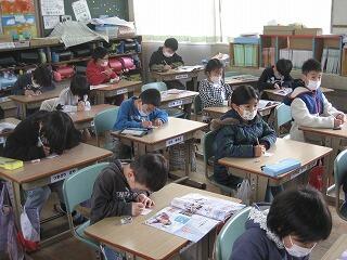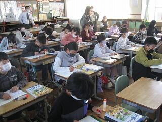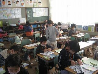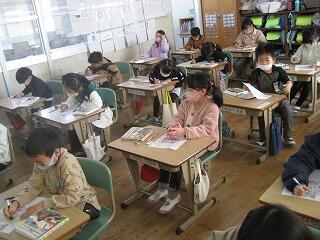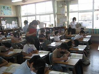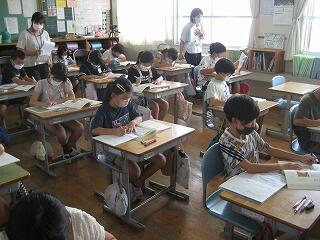 4年生のクラスで国語の研究授業を行いました。説明文が題材でしたが、児童は文章の中で大切な言葉を探し出し、その言葉を使った要約文作りにしっかり取り組めていました。