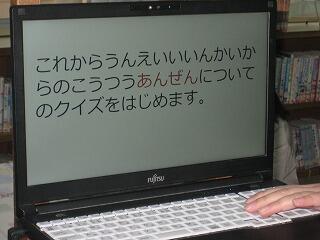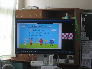 児童集会(オンライン)、交通安全クイズ