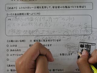 5年生は社会科の授業で、オンラインによる工場見学を行いました。会場は静岡県にある「ハウス食品」さんです。工場の工夫してあるところを説明してもらったり、生中継でレトルトカレーを作っている工程を見学したり、疑問に思ったことを質問したり。今はオンラインで日本中のいろんなところとつながることができるんですね。気分を出すためにみんな帽子をかぶってのオンライン見学でした。