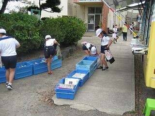 台風被害から復帰作業がある程度終わり、今日から学校を再開することができました。1階で床上浸水した1年生・やまもも学級はしばらくの間、2階より上の空き教室に引っ越しを行いました。1年生は1組、2組とも3階教室です。最初は戸惑っているところもありましたが徐々に慣れてくれたようです。給食もしっかり準備して、ちゃんと食べられました。