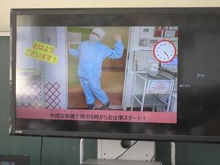 オンラインで全校朝会を行いました。今月は給食委員会が食べ物のことを絵やお話で上手に説明し川東小全体で「残菜をなくそう」という発表をしてくれました。いろんな食物から栄養をしっかりとってじょうぶな体を作りましょう。