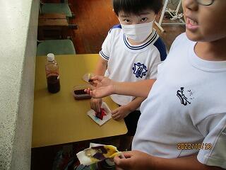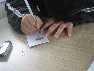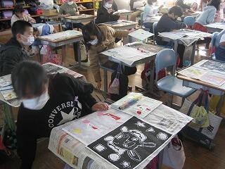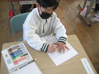1年生はお正月らしくたこ作りを行いました。それぞれ思い思いの絵をつけて自分だけのたこを作っていました。みんなの作ったたこが大空を飛ぶ日が楽しみですね。