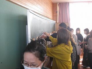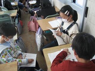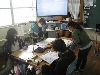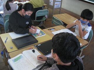 今、5年生と6年生のクラスに教育実習生が来て、将来教師になるための勉強をしています。先日、二人とも算数の研究授業を行いました。どちらもていねいに教材を研究したり、資料を作成したりとしっかりした授業を行ってくれました。