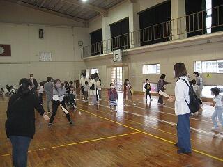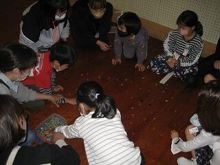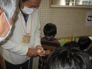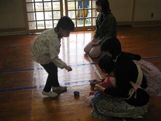 まず1年生は「むかしの遊び」。けん玉、竹とんぼ、おはじき。コマ回し・・・。いろんな遊びを教えてもらいました。みんな、楽しそうでしたね。お父さん、お母さんもいっしょにあそんでくれました。