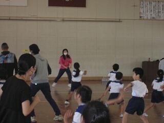 2年生のふるさと学習は「親子ダンス」。講師の先生に親子でできる体操やダンスを教えてもらいました。一緒に汗をかくととても気持ちいいですね。保護者の皆様もしっかり動けてましたよ!