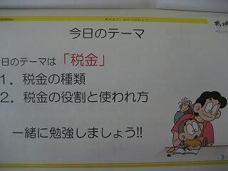 6年生は都城市役所資産税課の職員の方の来ていただき、税金についてのお話を聞きました。税金の使われ方などについて丁寧に説明していただきました。税金について、みんなしっかりと考えることができたようです。