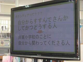 川東小ではボランティア感謝集会を行いました。日頃お世話になっているボランティアの方に直接会ってお話を聞いたりお礼を気持ちを伝えさせていただきます。時節柄、ボランティアの方に全員集まっていただくことができず、集会もオンラインで行いましたが、子どもたちの気持ちはしっかり伝わったかと思います。ボランティアのみなさん、本当にいつもありがとうございます。これからもよろしくお願いいたします。