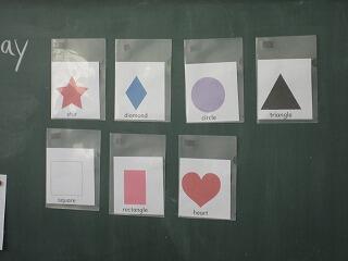 3年生の外国語学習の一コマです。今日はいろんな形を英語で話す練習をしていました。ただ言葉を暗記だけするのではなく、いろんな道具を使って体感的に外国語と触れています。まる、三角、四角・・・。英語でなんというか覚えられましたか?