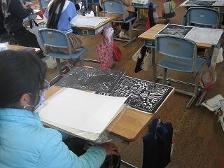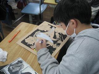 4年生の図工の時間、版画を作成していました。ただ白黒だけの版画ではなく、いったん刷り上がった版画にカラフルな色をつけているようです。どんなすてきな作品が仕上がるか楽しみですね。完成したらまたご報告します。