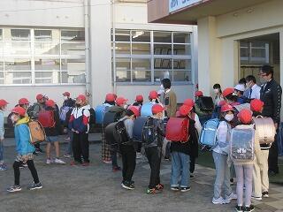 阪神淡路大震災から28年、あの悲劇を伝え教訓とするために、本校でも避難訓練を行い命を守る行動の大切さを学ぶこととしました。避難の際に児童は「おかしもち」(押さない、かけない、しゃべらない、戻らない、近づかない)の約束をしっかりと守って真剣に避難行動ができました。また消防署の職員さんの話を聞いたり、消火器の使い方のついても教えてもらいました。ご家庭でも災害時の避難について話題にしていただけるとありがたいです。