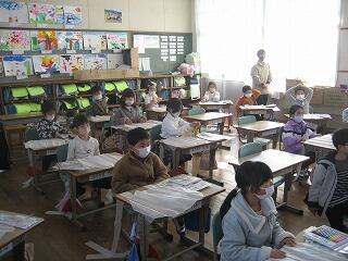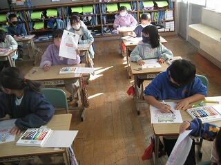 3年生のふるさと学習は「パステル絵画」。講師の先生にきれいに色をつける方法を教えてもらいました。みんなが作った作品、とても美しく仕上がりましたよ。
