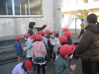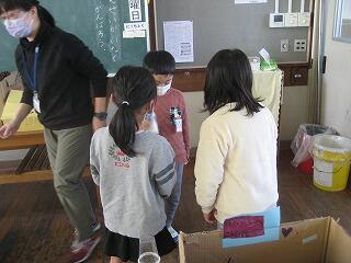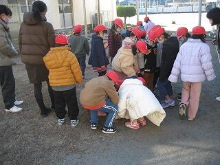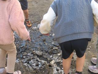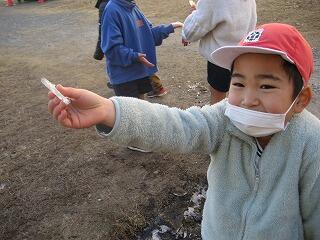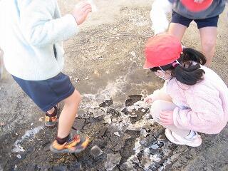 寒い日が続きます。今朝のプレハブの校長室の室温はマイナス5.4度でした。そんな中、1年生は冬を探しに校舎を飛び出しました。氷が張っている水たまりや霜柱を見つけ、足で踏んだりしてその感触を確かめていました。さすが明るく元気な1年生です!