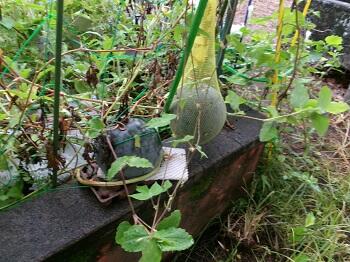 2年生が生活科で育てたすいかが夏休みの間に大きな実をつけました。