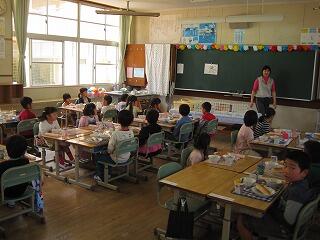 今日から1年生も給食が始まりました。わくわくしていた1年生。